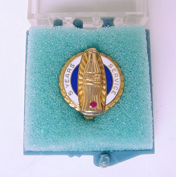 Title (ebay affiliate link): COCA-COLA 5-YEARS SERVICE 5/8" EMPLOYEE 10K GOLD PIN w RUBY INSERT, BALFOUR CASE