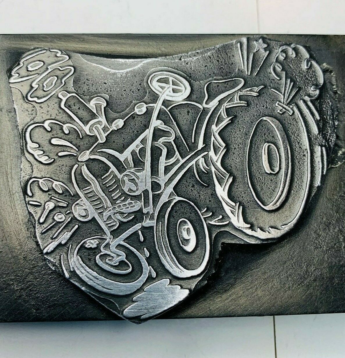 FARM TRACTOR ANTIQUE Letterpress Print Plate Mounted On METAL FURNITURE