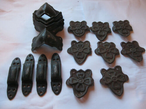 Vintage steamer trunk parts TRIM CORNERS HANDLE ENDS