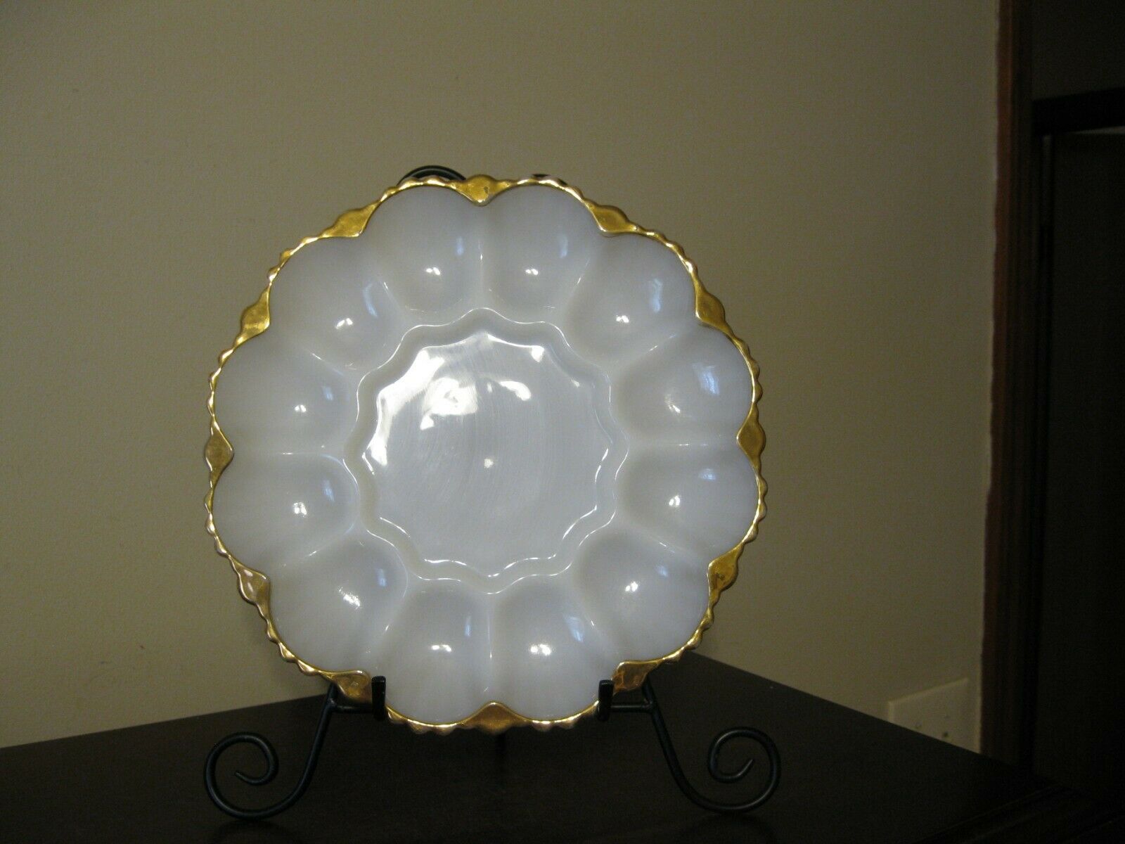 Title (ebay affiliate link): Vintage Anchor Hocking Fire King Milk Glass Gold Trim Deviled Egg Dish Tray Plat