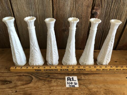 Title (ebay affiliate link): A1 - Lot of 6 Vintage Tall White Milk Glass Vases~Wedding Vase Centerpieces
