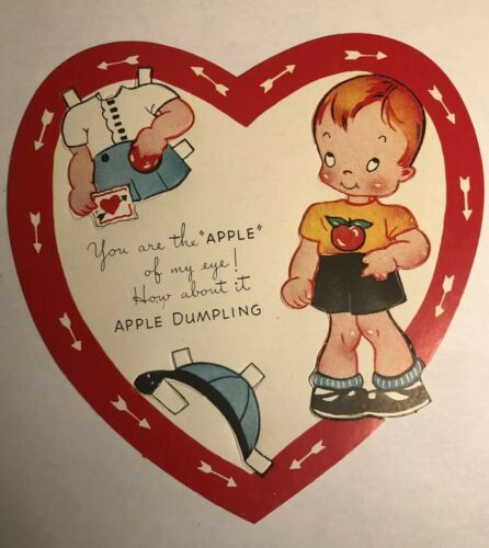 Title (ebay affiliate link): Vintage Estate 1930s-40s Valentine Paper Doll Punch Out Boy Apple Unused