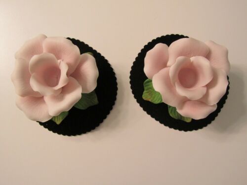 VTG PAIR PINK ROSE CAPODIMONTE CANDLE HOLDERS 2 PC SET