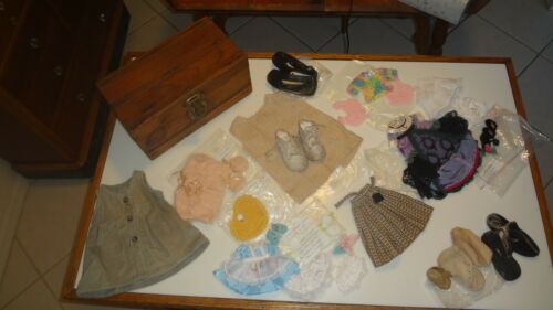 ECLECTIC LOT VICTORIAN ANTIQUE VINTAGE-90s OLD WOODEN DOLL CHEST FULL OF CLOTHES