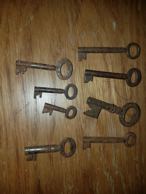 Title (ebay affiliate link): 8 Old Antique Vintage Keys for Cabinet, Cupboard, Doors, Furniture complex keys