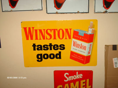 1965 WINSTON TASTES GOOD TIN CIGARETTES SIGN NOS