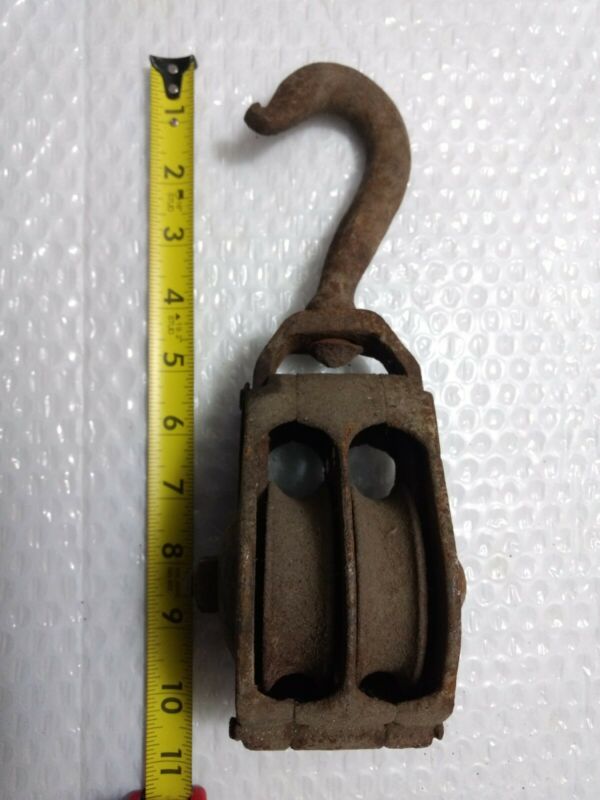 Title (ebay affiliate link): Vintage Cast Iron Barn Double Pulley Old Antique Rustic Primitive