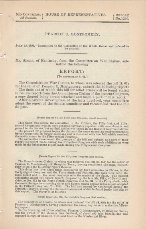 Title (ebay affiliate link): House of Representatives: Pearson C. Montgomery - July 13, 1894