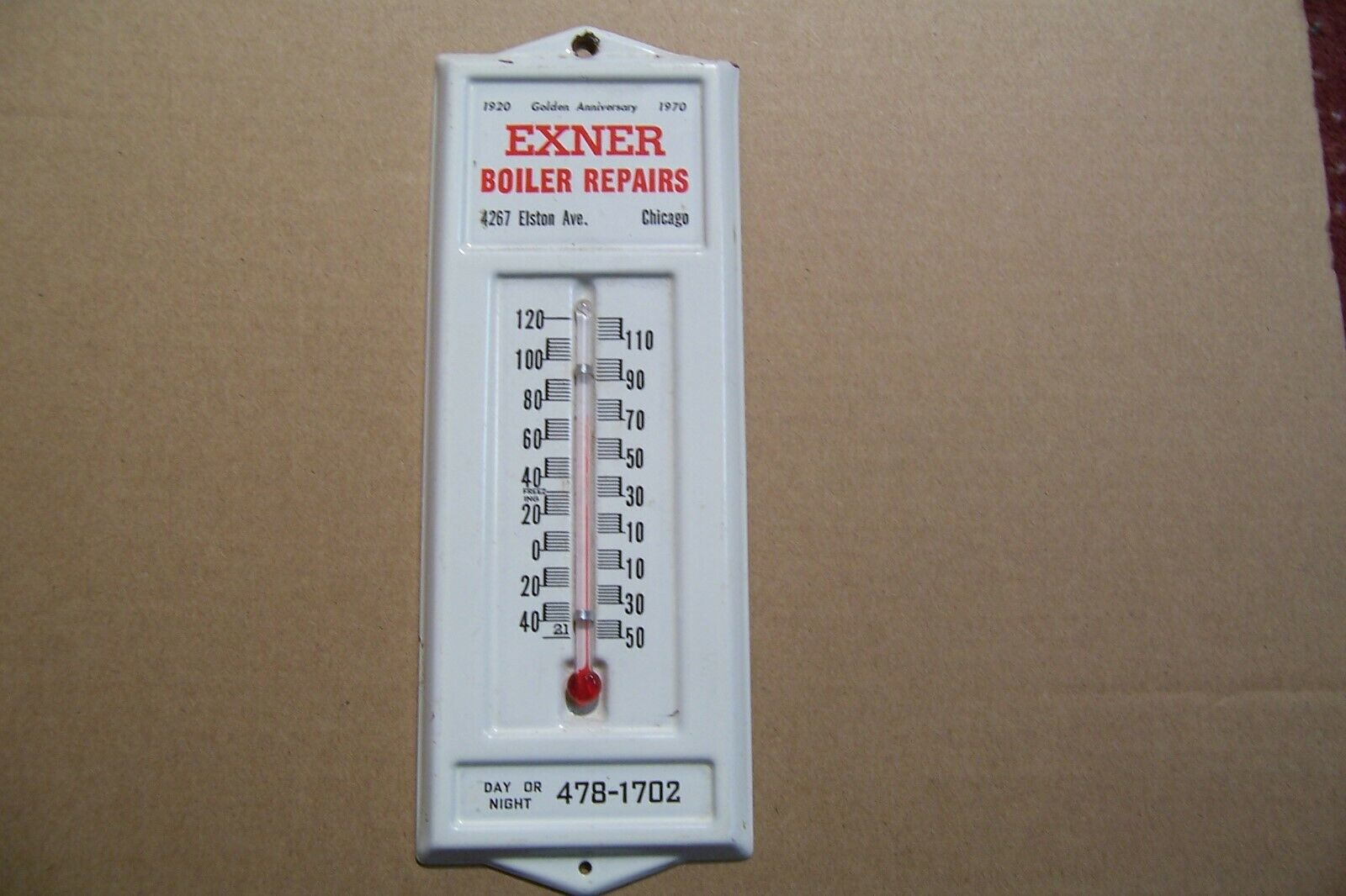 Vintage Advertising Metal Thermometer Exner Boiler Repairs Chicago Illinois IL