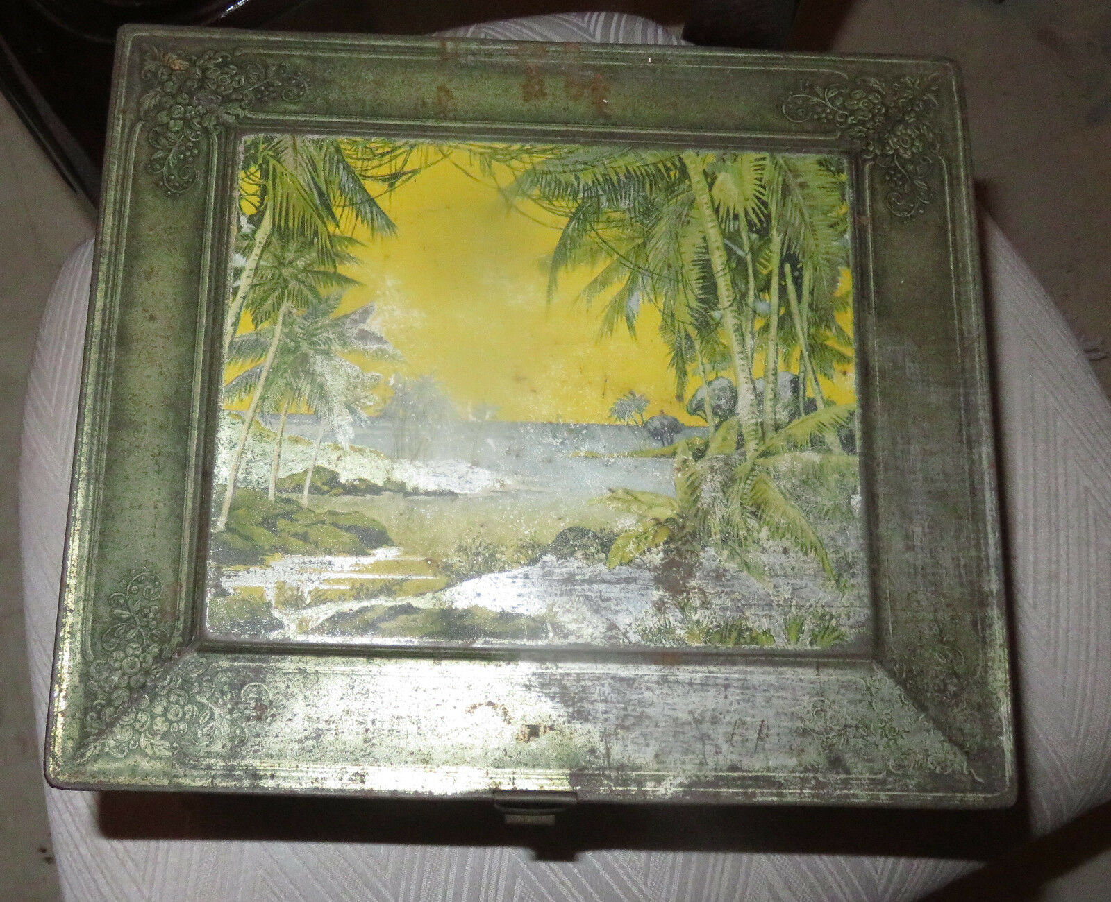 Vintage Tin Box with Palm Trees