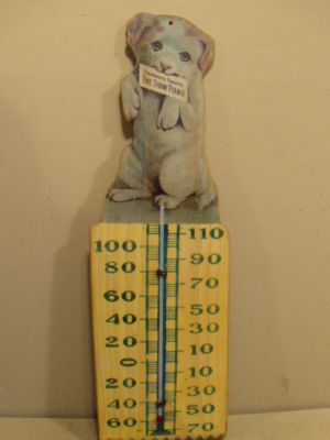 The Shaw Piano Wood Adv.Thermomter Cute White Puppy