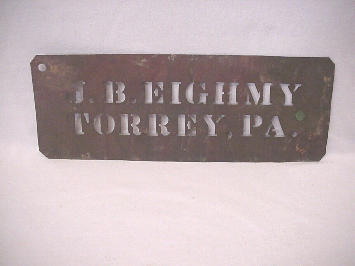 J. B. Eighmy Torrey, Pa Brass Advertising Stencil