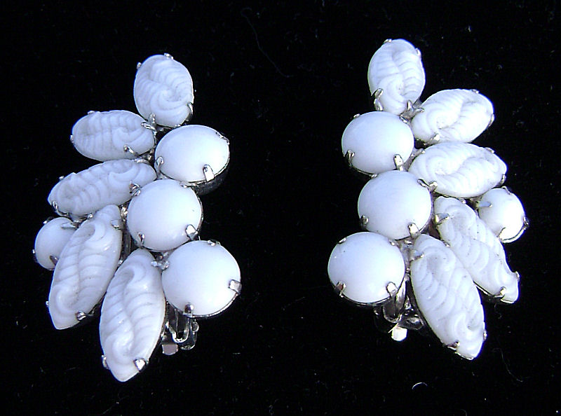 UNIQUE VINTAGE CLIP EARRINGS WHITE MILK GLASS D'ARLAN