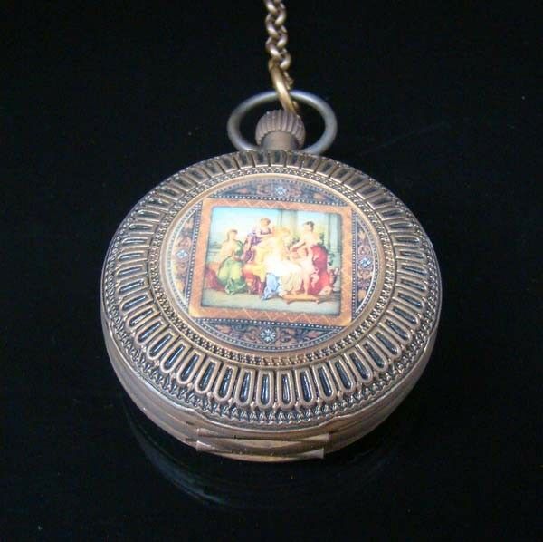 Title (ebay affiliate link): Collectible Classical Handmade Mechanical Pocket Watch Copper Brass two open