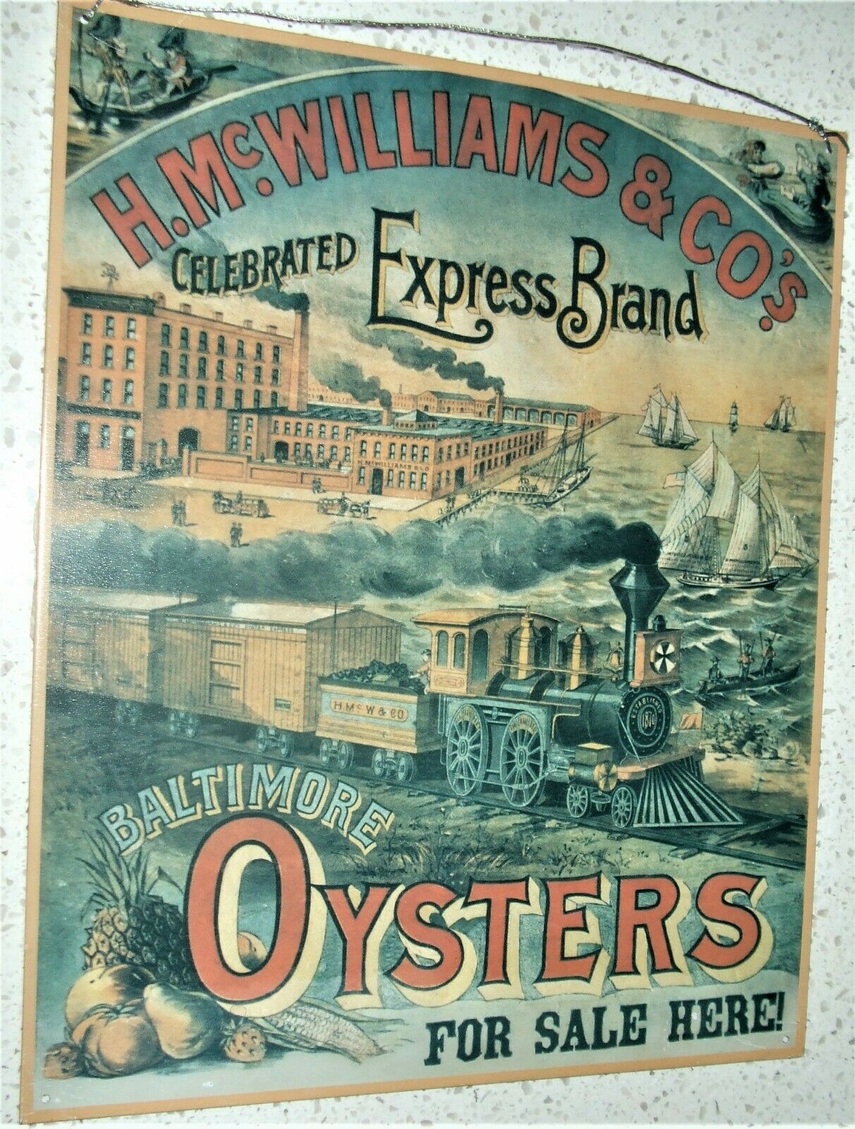 Title (ebay affiliate link): Baltimore Oysters*H.Mc.Williams & Co Celebrated Express Brand * Vintage Tin Sign