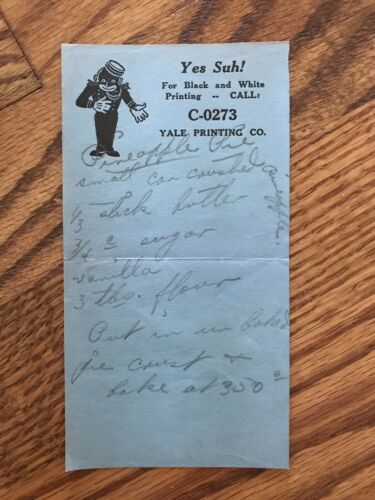 Title (ebay affiliate link): Vintage Black Face Ad Yale Printing Co. w/ Handwritten Recipe for Pineapple Pie