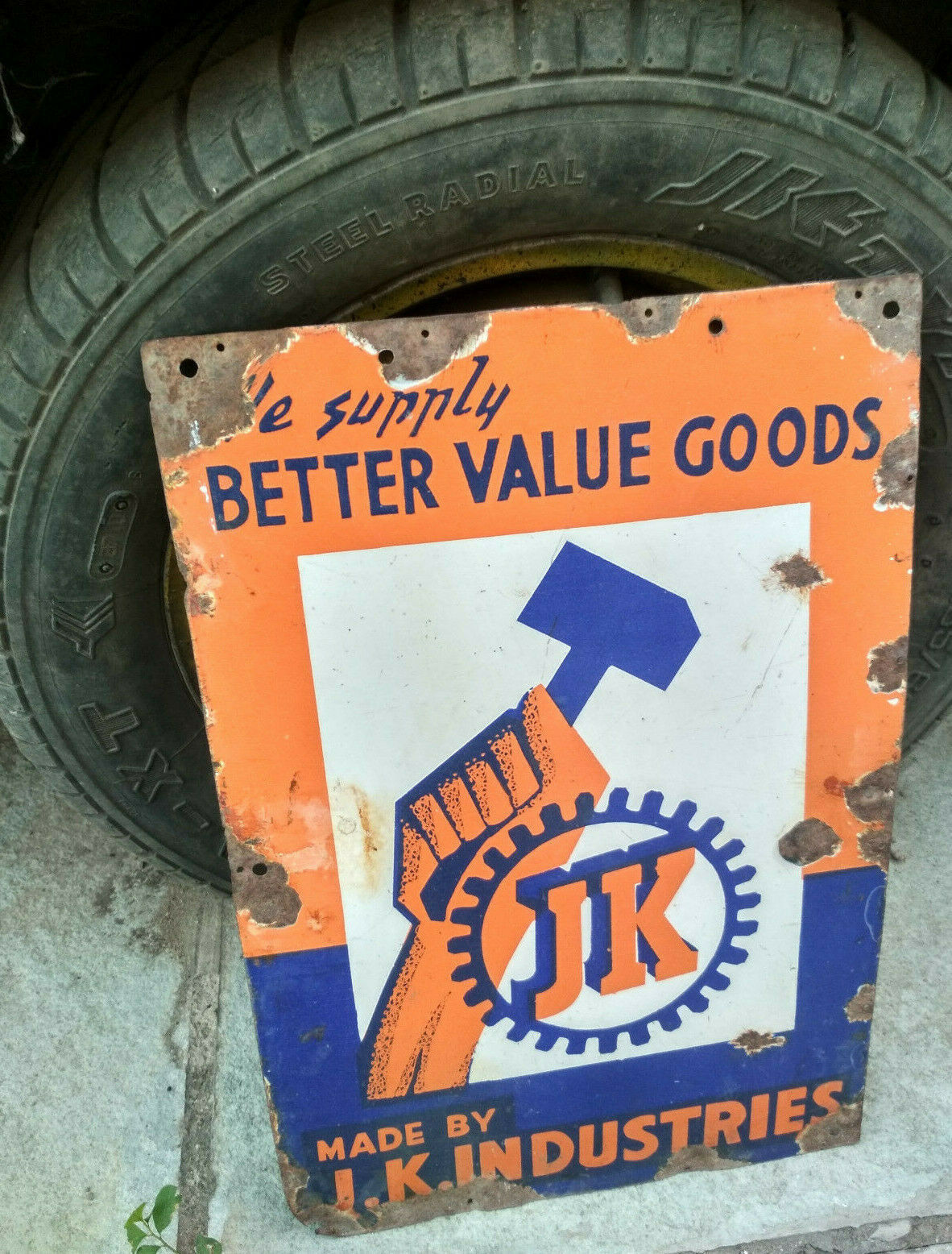 JK TIRES INDUSTRIES PORCELAIN ENAMEL SIGN 18X12 INCHES SINGLE SIDED