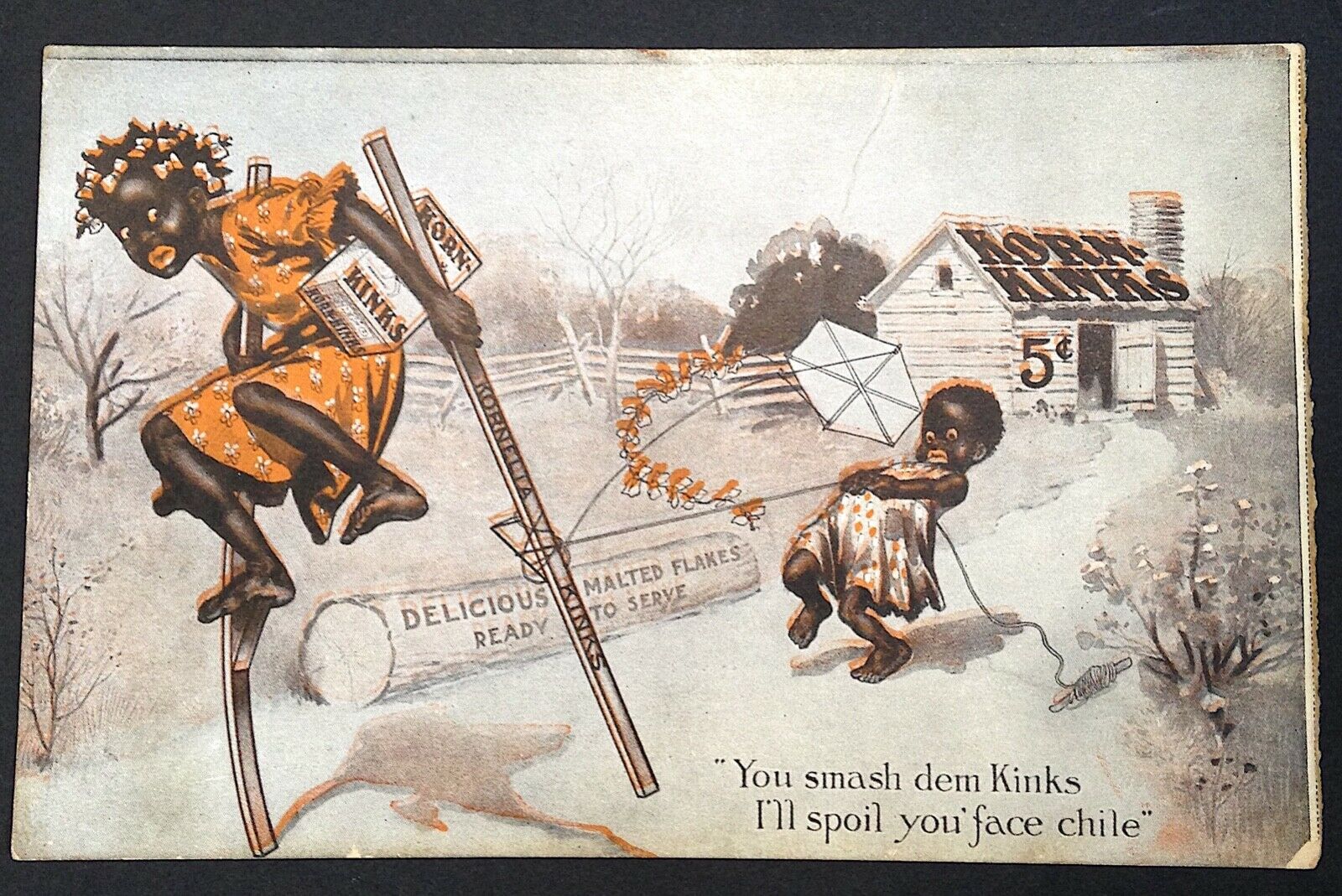 Antique Postcard, Korn Kinks Advertising, Black Americana, c. 1900