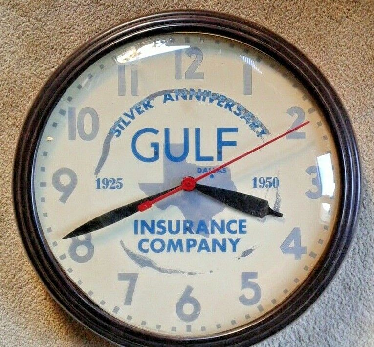 Title (ebay affiliate link): VTG 50s BAKELITE GULF INSURANCE COMPANY ADVERTISING-WALL CLOCK SIGN DALLAS, TX