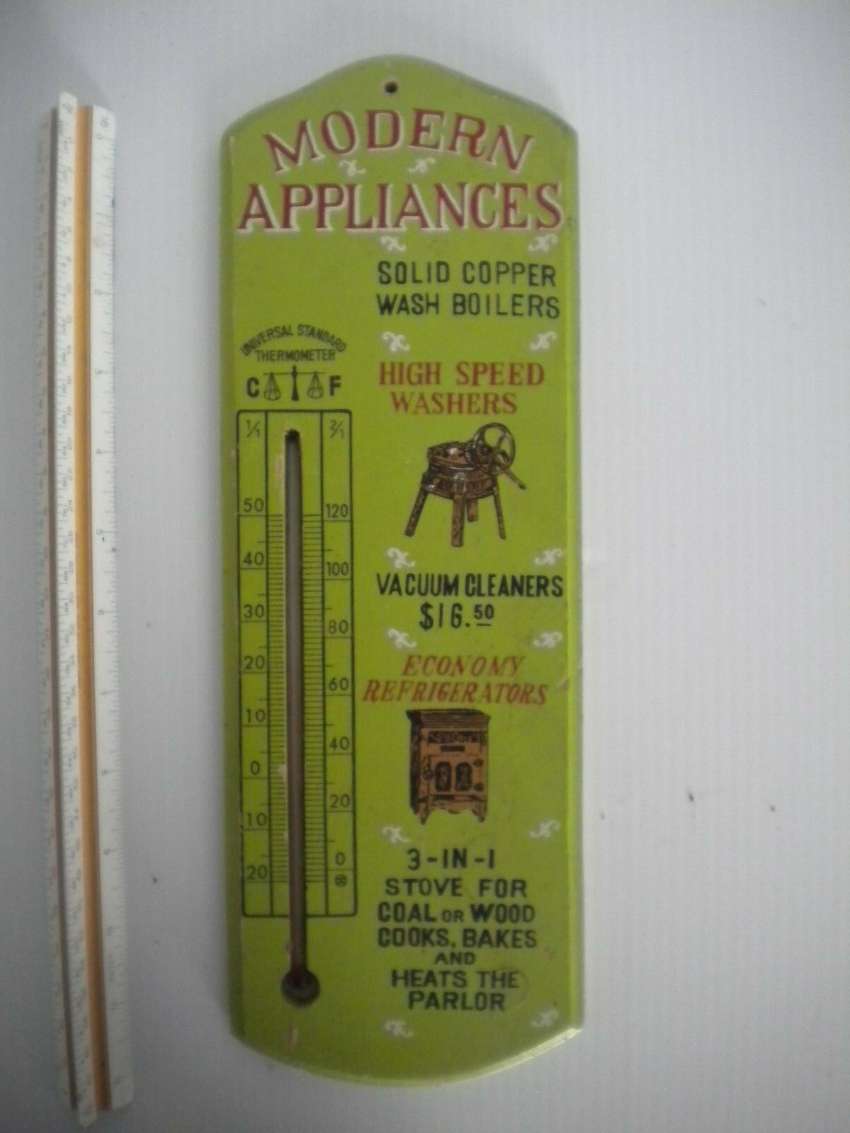 Title (ebay affiliate link): Vintage VICTOR GOLDMAN INC, thermometer, wood back "modern appliances theme" wor