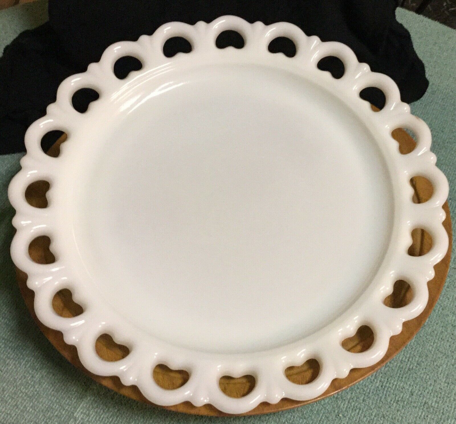 Vintage-13" Large Round Lace Scalloped Edge-Milk Glass-Cake Plate-Tray Serving P