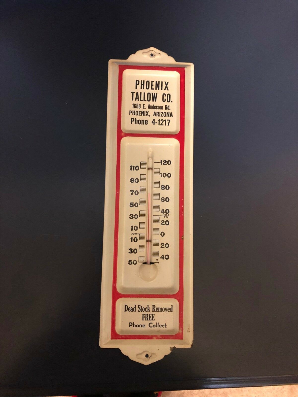 Phoenix Tallow Co. Vintage Tin Advertising Thermometer
