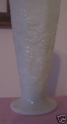 Tall White Milk Glass Grape Adorned Vase-Vintage