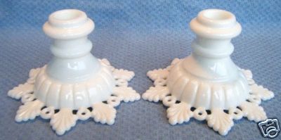 Westmoreland Milk Glass Ring & Petal Candlesticks 1940s