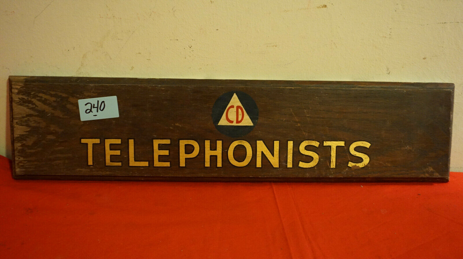 VINTAGE CIVIL DEFENSE TELEPHONISTS WOOD SIGN WARREN COUNTY COLD WAR ORIGINAL