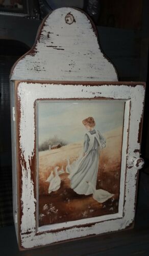 Title (ebay affiliate link): Hand Painted shabby wood wall Cabinet spice box shelf country prairie farmhouse