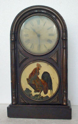 ANTIQUE GERMAN ROOSTER GLASS PANEL COLUMN MANTLE CLOCK