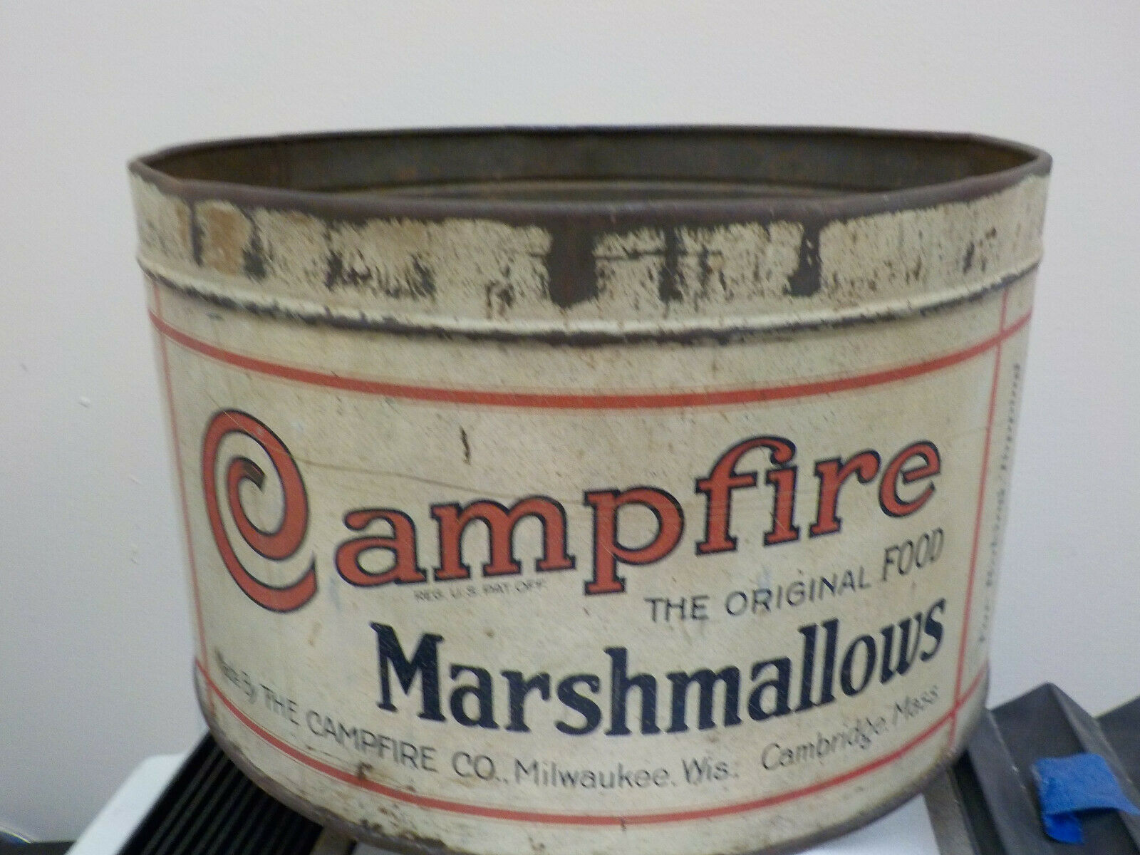 Title (ebay affiliate link): ANTIQUE VINTAGE CAMPFIRE MARSHMALLOW TIN, 5 lb., no lid, has some wear