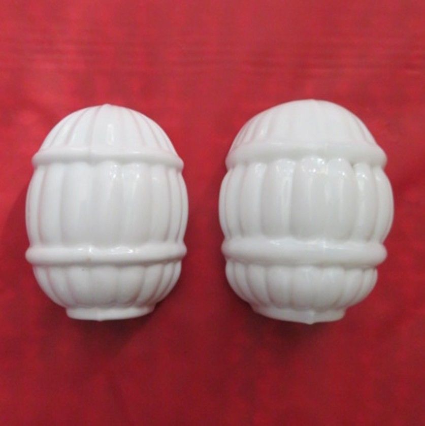 2 Vintage Rib / Band WHITE MILK GLASS Bird Cage Feeder Seed Water Cups
