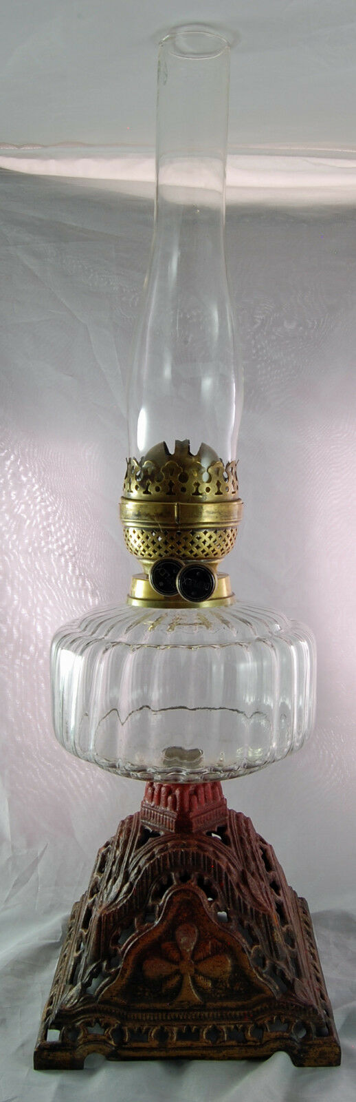 Title (ebay affiliate link): Oil Lamp with Cast Iron Base & Ribbed Glass Reservoir - Duplex Burner