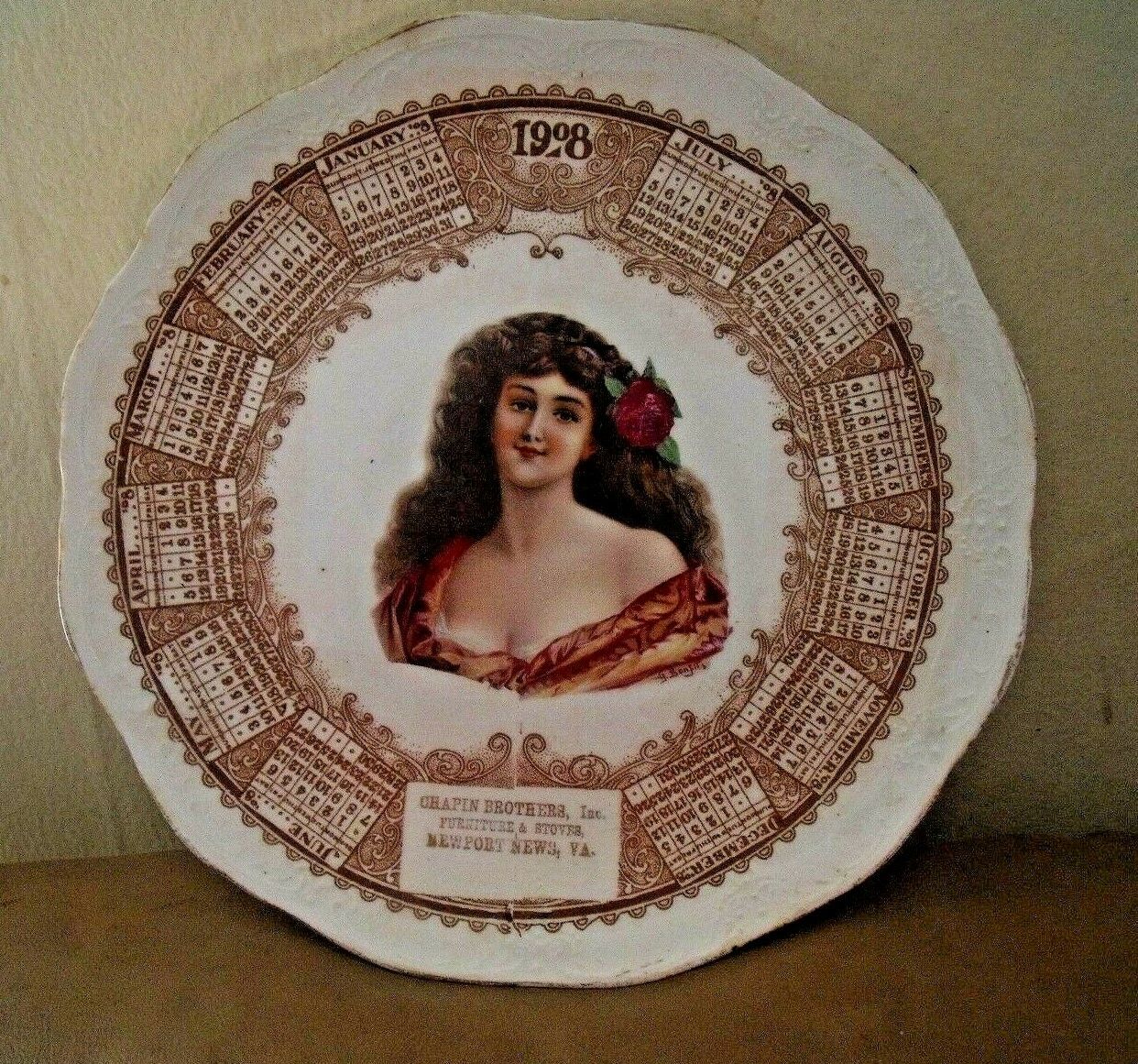 Title (ebay affiliate link): Antique Calendar Plate 1908 CHAPIN BROTHERS FURNITURE & STOVES VA