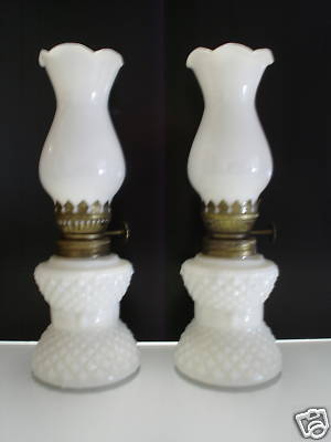 Pair of Vintage Milk Glass Bow Tie Mini Oil Lamps