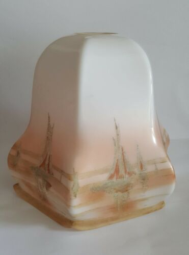 Title (ebay affiliate link): Art Deco White Glass Lamp Shade Gas Lamp Shade with Sailboats Boat