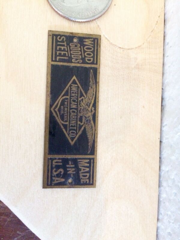Title (ebay affiliate link): Antique AMERICAN CABINET CO. TWO RIVERS WISCONSIN Brass PLATE for Dental Cabinet