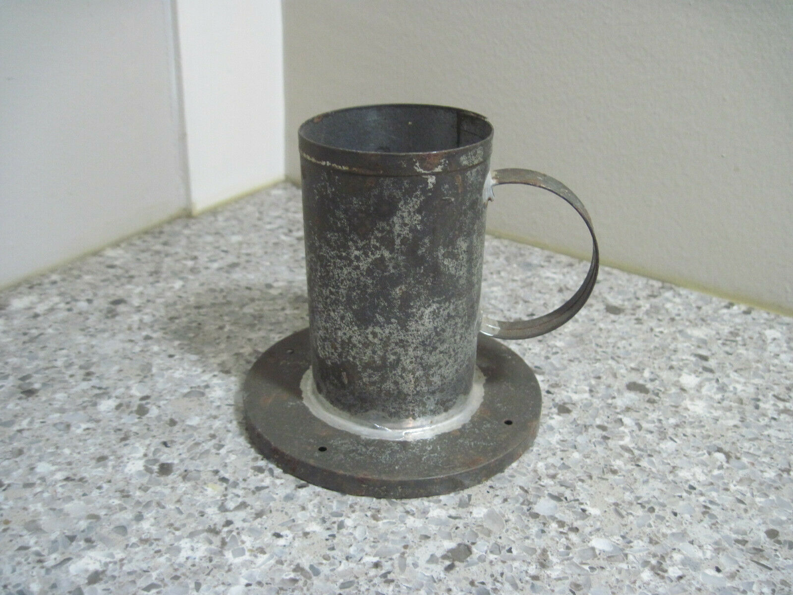 Antique Primitive Tin Candle Mold -Rare Standing Single Tube Fat -2&1/3" x 4"