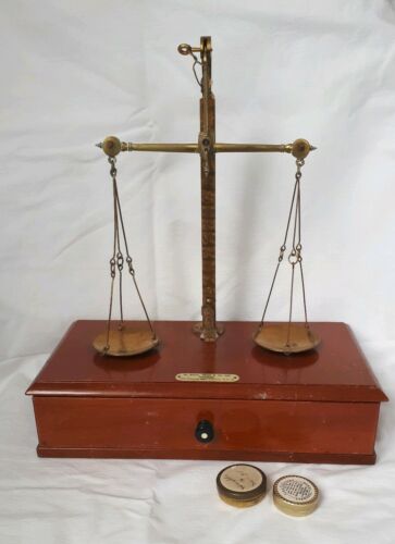 Title (ebay affiliate link): Antique Vintage Balance Scale De Grave Short Co. Apothecary Storage Box Weights