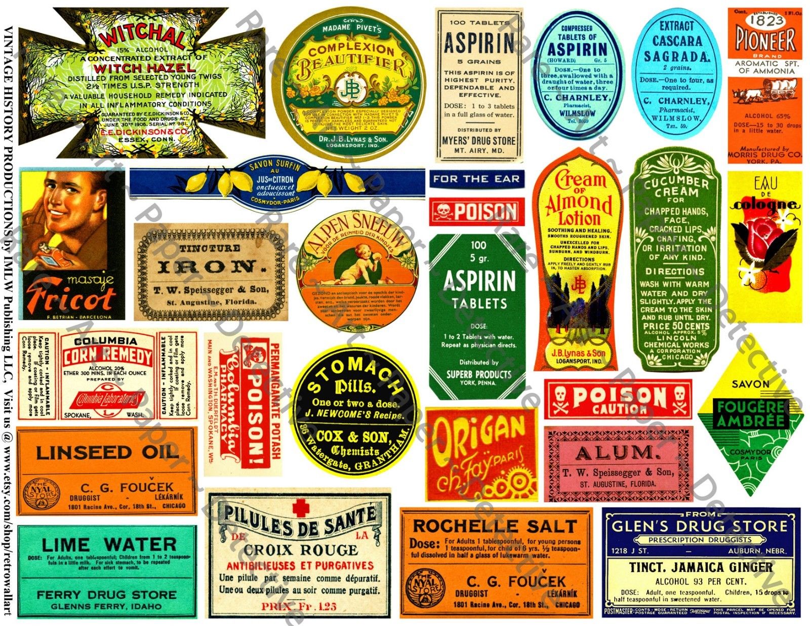 Title (ebay affiliate link): 28 PHARMACY LABELS, Sticker Sheet, Apothecary Labels & Drug Store Pharmacy Decor
