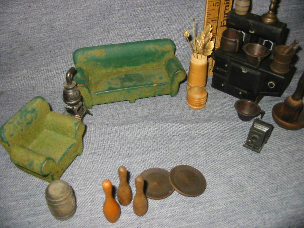 ANTIQUE VTG WOOD COPPER SALESMAN SAMPLE DOLLHOUSE MORTAR PESTLES LOT