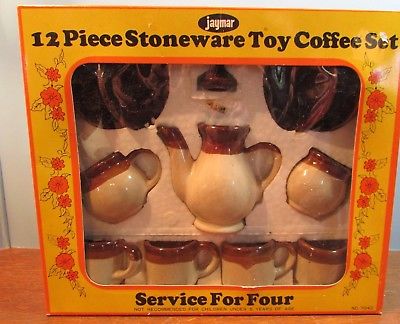 Title (ebay affiliate link): Larger Miniature 12 piece coffee set cup saucer pot sugar bowl childs/dolls
