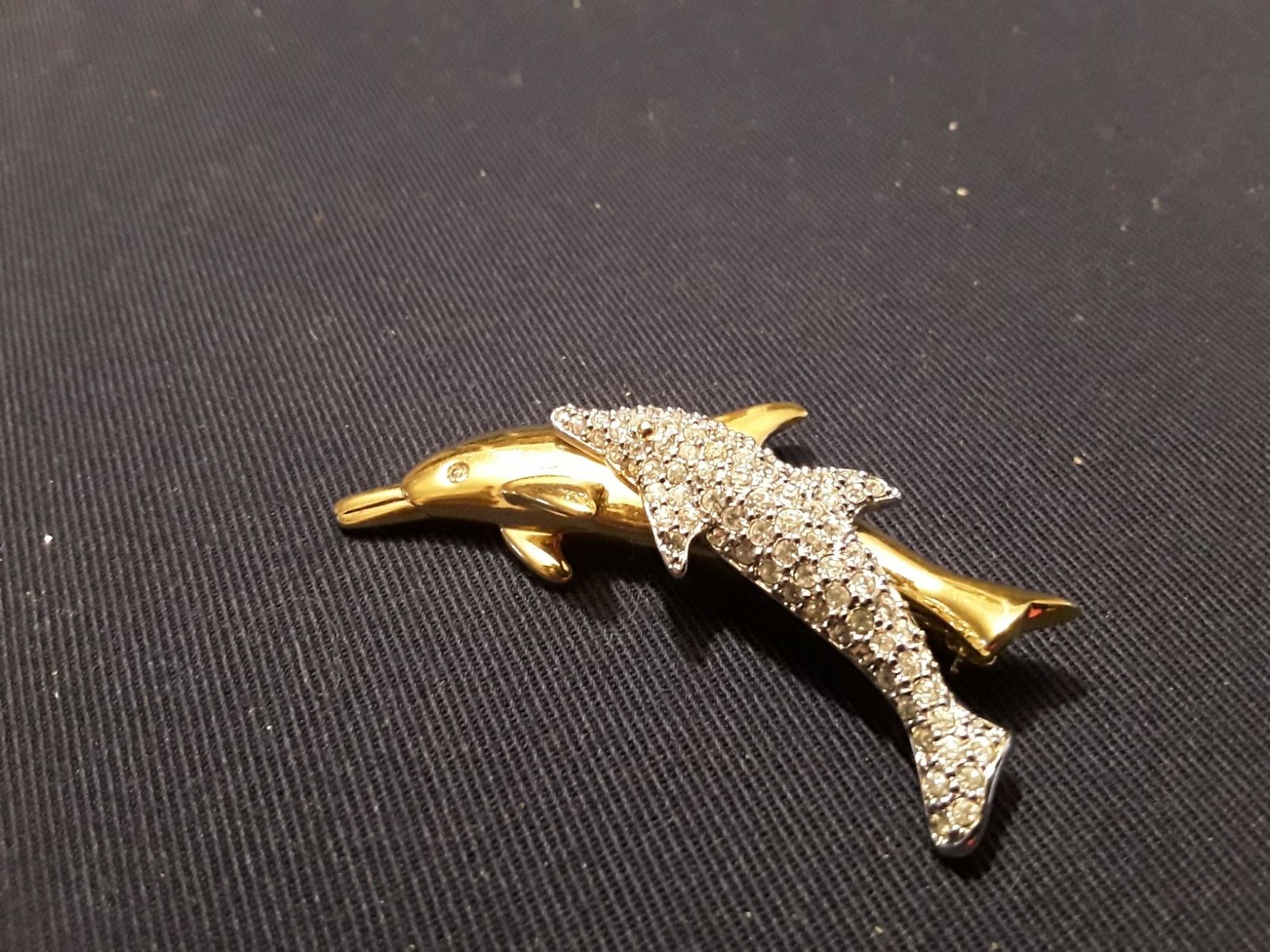 Title (ebay affiliate link): VINTAGE GENUINE SWAROVSKI SWAN STAMP DOLPHIN PAVE CRYSTAL RHINESTONE PIN BROOCH