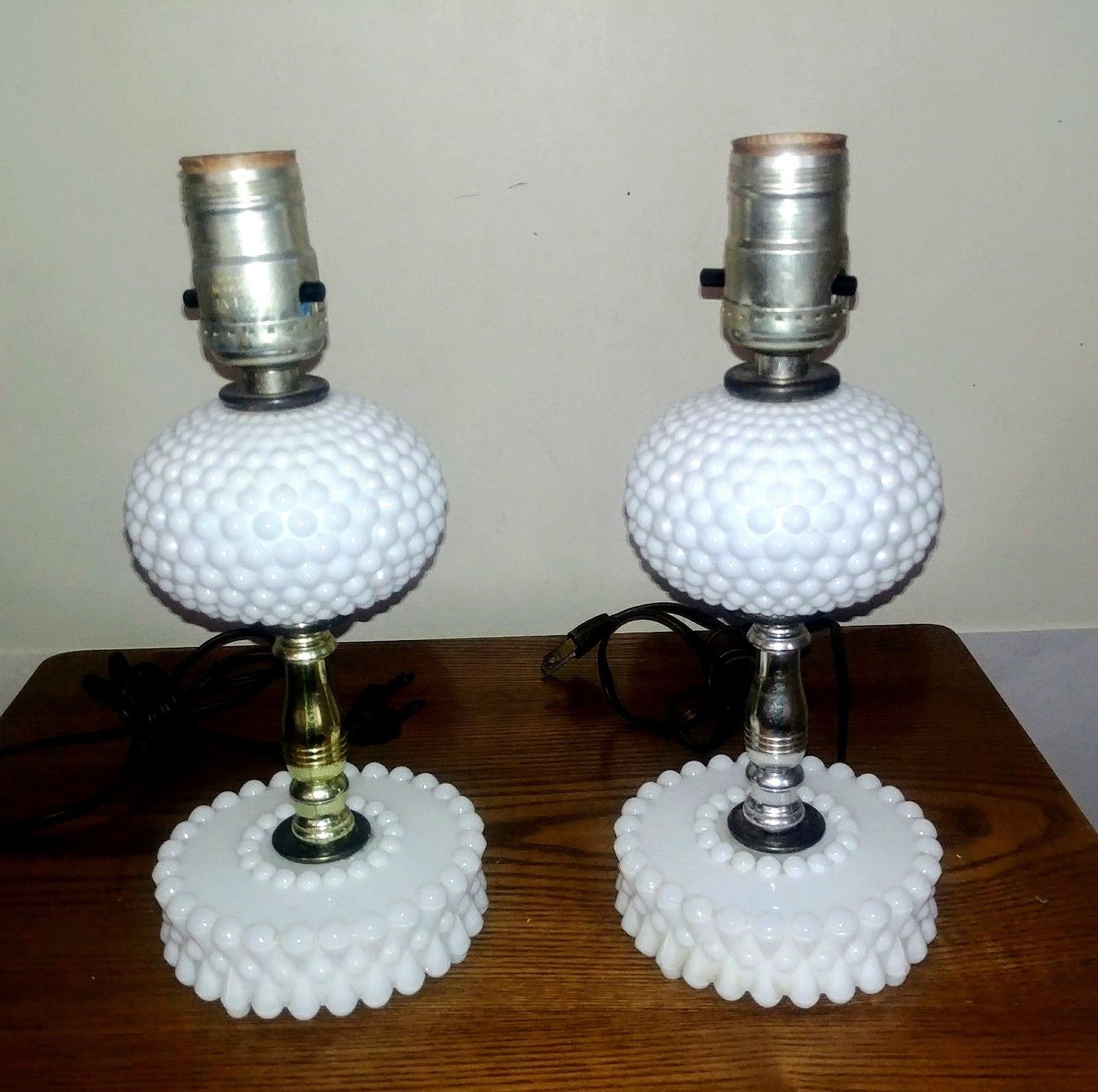 Title (ebay affiliate link): Leviton Set of 2 Vintage Hobnail Milk Glass Electric Lamps