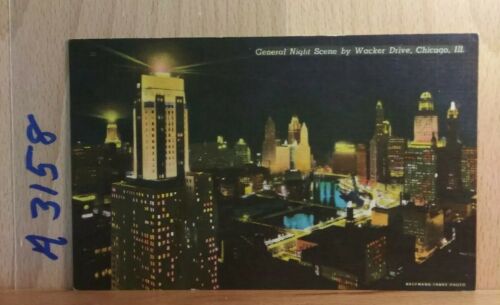 Title (ebay affiliate link): Linen postcard, Night Scene by Wacker Drive, Chicago, Illinois