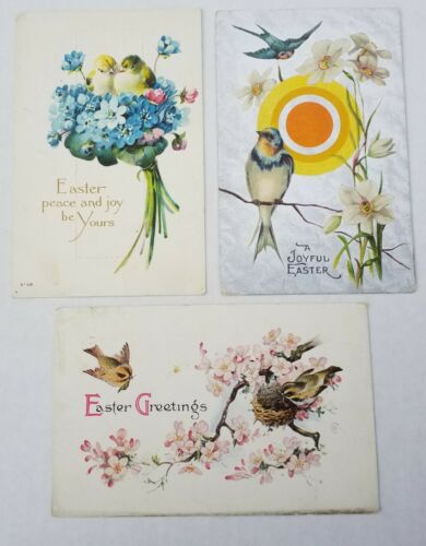 Title (ebay affiliate link): 3 Vintage Easrer postcards 1909-15 Birds Flowers and Easter Greetings