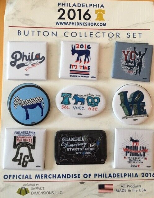 Title (ebay affiliate link): Button Collector Set of Nine Philadelphia 2016 Democratic Convention Pins