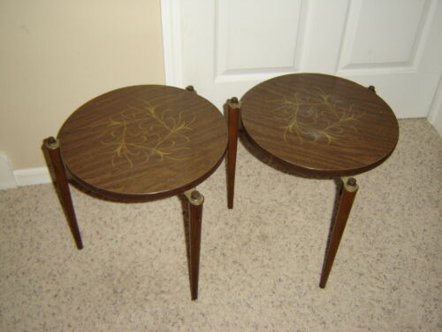Mid-Century set of 2 round nesting stacking tables walnut veneer w/ top design