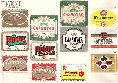 CZECHOSLOVAKIA - Brewery Kosice - Lot of 12 different beer labels (SK07)